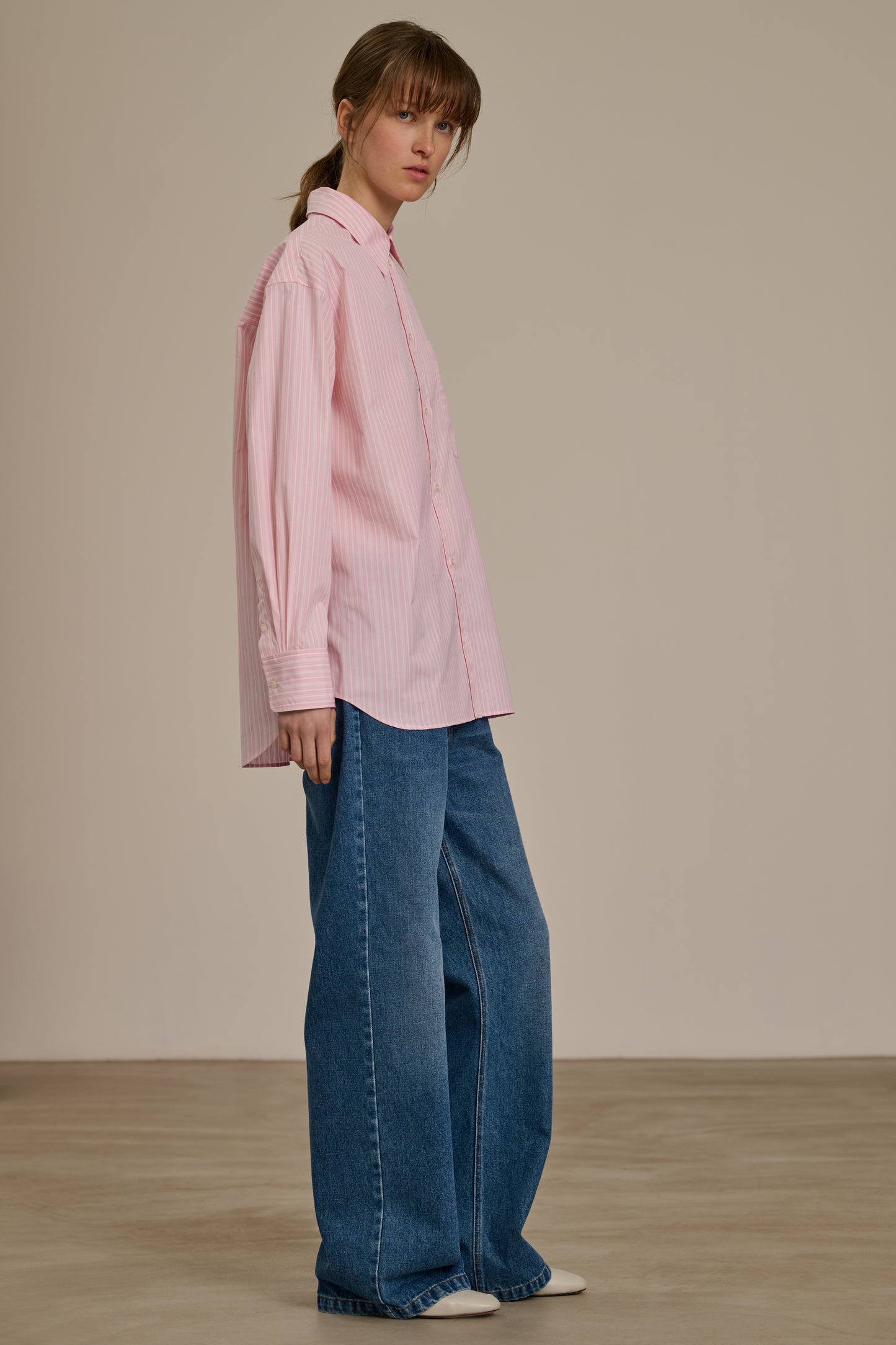CARLOTTA is a striped poplin shirt designed with an oversized fit inspired by men's wardrobes, for a relaxed yet elegant style.